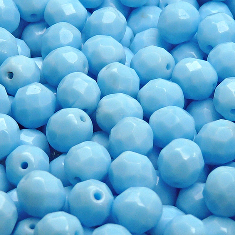 - 25pcs Czech Fire Polished Faceted Glass Beads Round 8mm Opaque Turquoise Blue