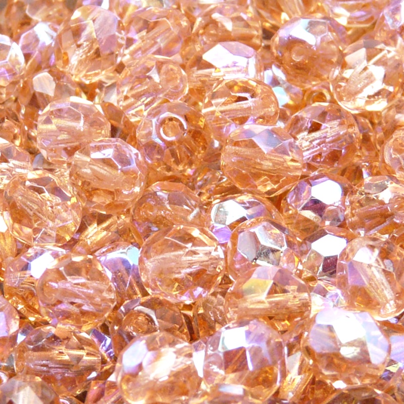 - 25pcs Czech Fire Polished Faceted Glass Beads Round 8mm Rosaline AB