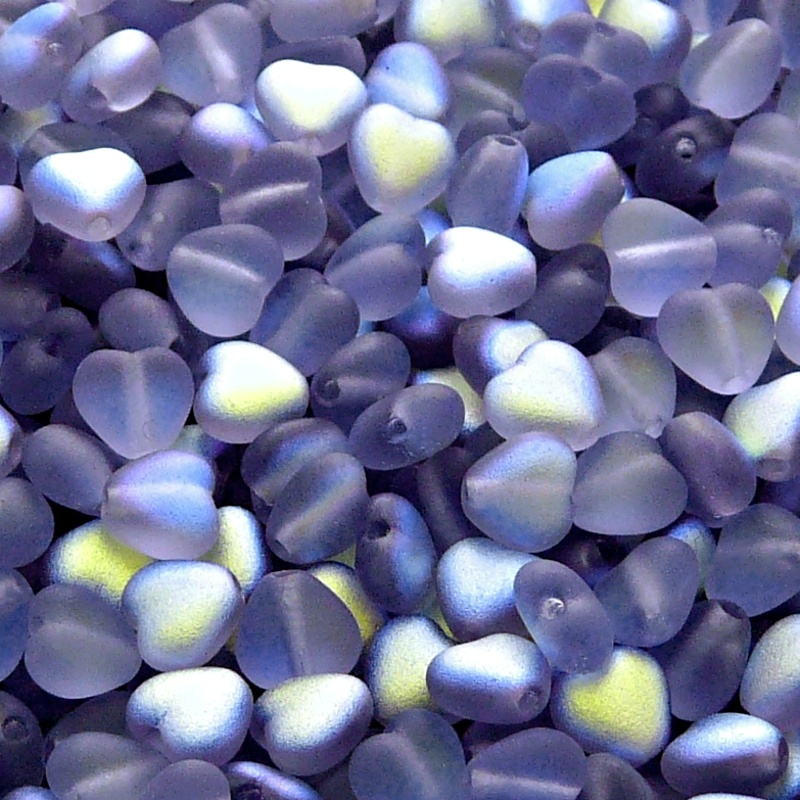 - 50pcs Czech Pressed Glass Heart Beads 6mm Tanzanite AB Matte