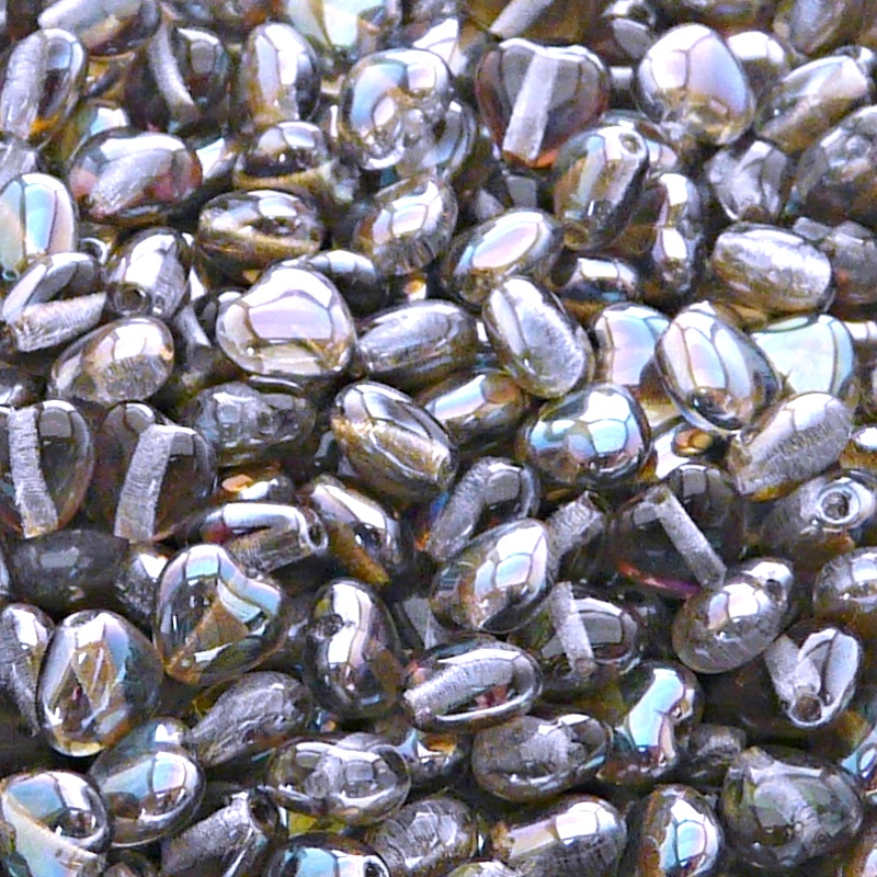 Glass Pressed Beads are one of the oldest types of beads. They are the embodiment of boundless human imagination in one of the most beautiful natural materials, traditional Bohemian glass. These were the first beads that were made here over three hundred years ago using the technique of pressing heated glass rods in a mould. Czech pressed glass beads in the shape of a heart are produced using the same technology as all czech glass pressed beads. Size 6mm.