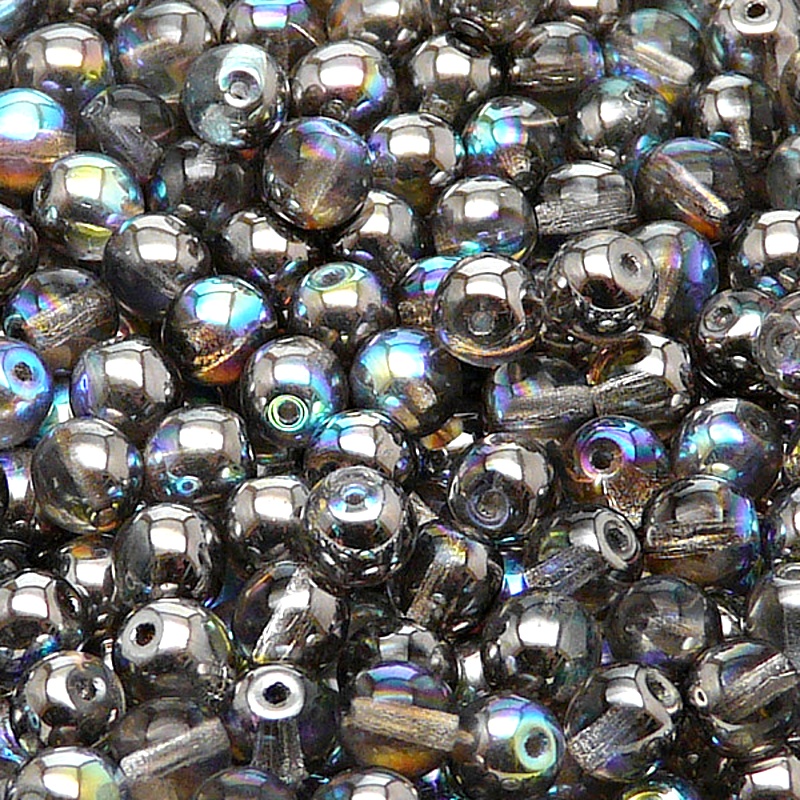 50pcs Czech Pressed Glass Round Beads 6mm Crystal Graphite RainbowIn stock 30 qty72,00 CZK/ qty59,50 CZK VAT excluded