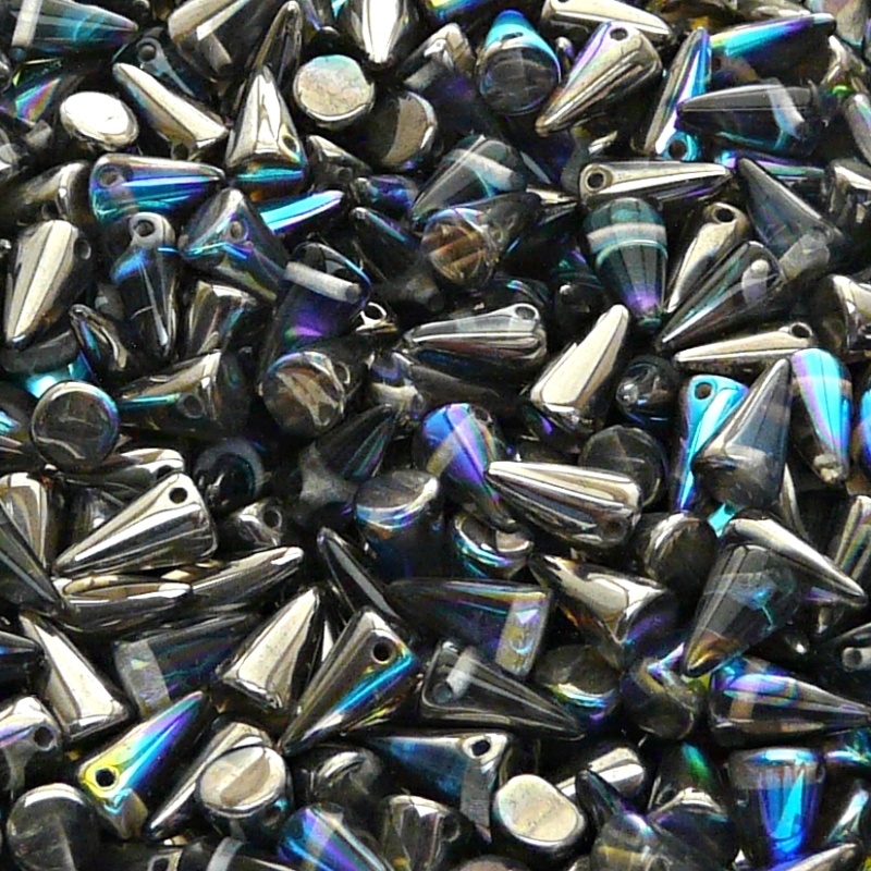 50pcs Czech Pressed Glass Spike Beads 5x8mm Crystal Graphite RainbowIn stock 40 qty60,00 CZK/ qty49,59 CZK VAT excluded